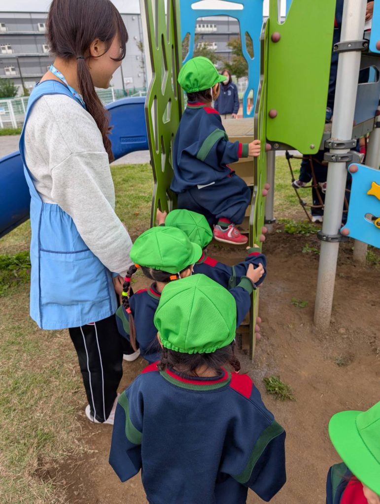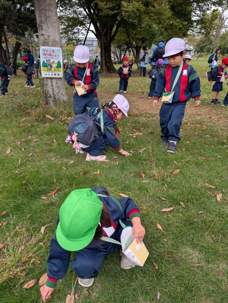 日々のできごと 2025.12.1 秋の遠足その2 年少組、満3歳児組の小さなお友だちは、近くの大きな公園に遠足に出かけました。どんぐりを拾ったり、幼稚園とは異なる遊具で遊んだり、おやつを食べたり… 子どもたちもとっても楽しい一日を過ごせたようで、園に帰ってきてからも興奮気味の様子でした!