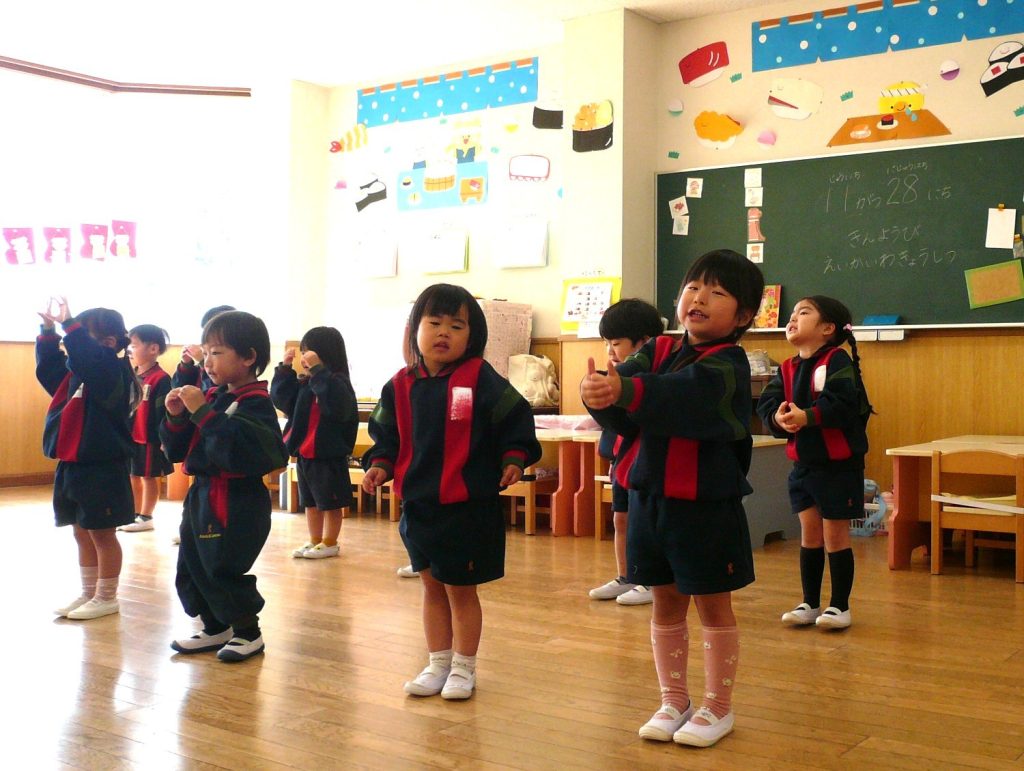 一番小さな満3歳児クラスの子どもたちも、お家の方へとても元気に発表できました!(写真は練習の様子です)