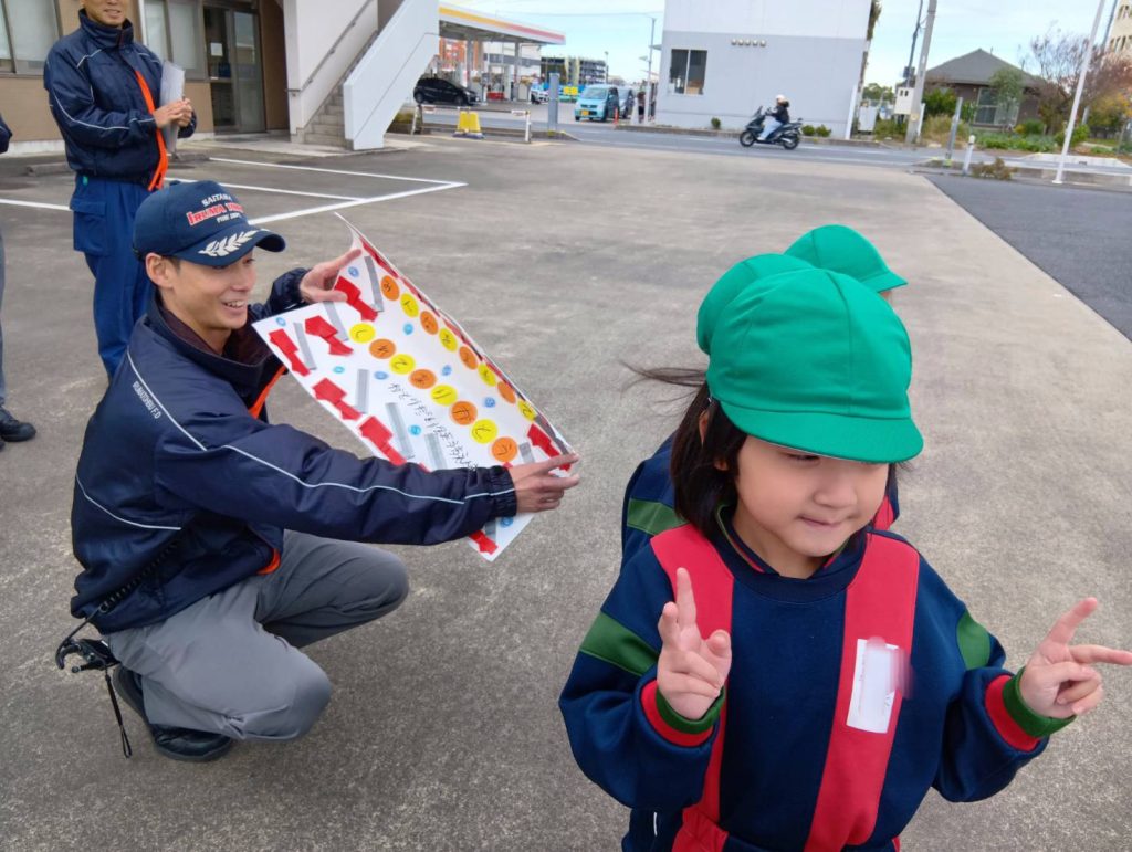 沢山のことを教えてくださった消防隊員の皆様、いつも私たちみんなを助けてくれて、どうもありがとうございます!子どもたちからもかっこいい隊員さんたちに、お礼に心をこめてプレゼントを作り、お渡しました。