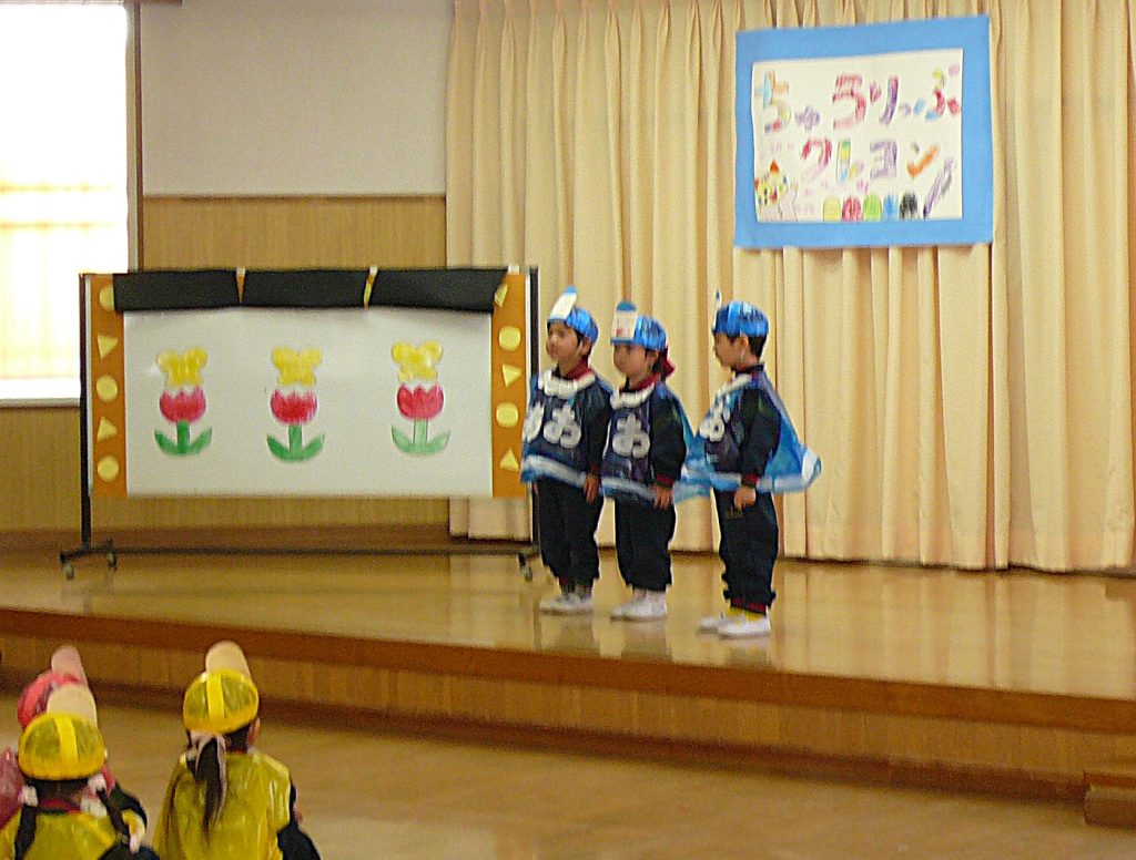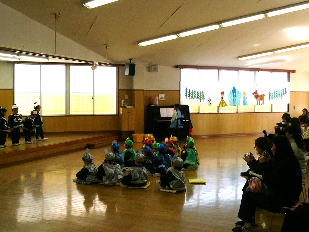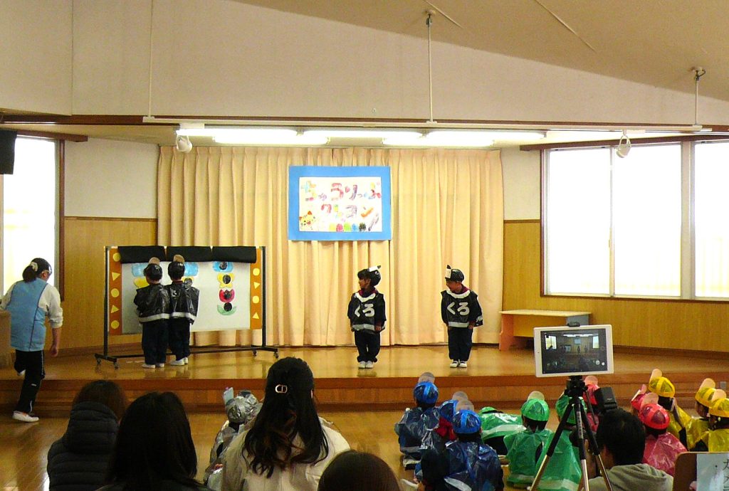 ステージのある広いホールで、お家の方に届くよう一生懸命大きな声でセリフや歌を届けている姿が微笑ましかったです。